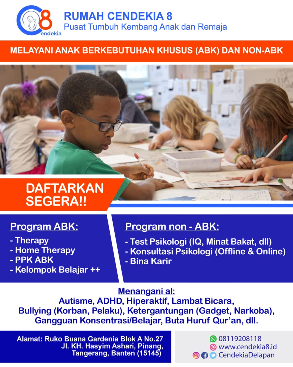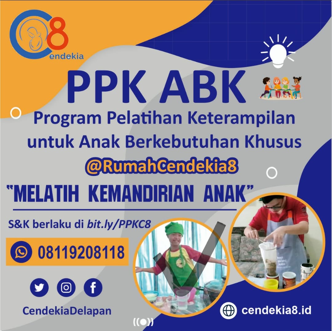Cari Tau...RumahCendekia8 memiliki program terpadu bagi ABK (Anak Berkebutuhan Khusus) dengan fokus utama pada keterampilan dan kemandirian Anak